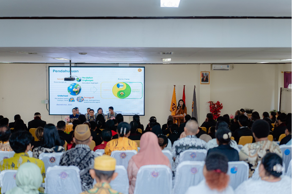 Universitas Papua sebagai salah satu tempat berkumpulnya para akademisi juga melaksanakan kegiatan orasi ilmiah sebagai salah satu wadah bagi para akademisi dalam menyampaikan hasil penelitiannya. Dalam acara Pelepasan Lulusan Periode III Tahun Akademik 2024/2025 di lingkungan FEB UNIPA, dilakukan Orasi Ilmiah yang disampaikan oleh Dr. Jein Sriana Toyib, SE., M.Si, selaku dosen di FEB UNIPA pada program studi Manajemen. Orasi Ilmiah pada acara tersebut berjudul “Berpikir Hijau, Bertindak Digital: Ilmu, Inovasi, dan Keberlanjutan untuk Strategi Bertahan dan Berkembang”.